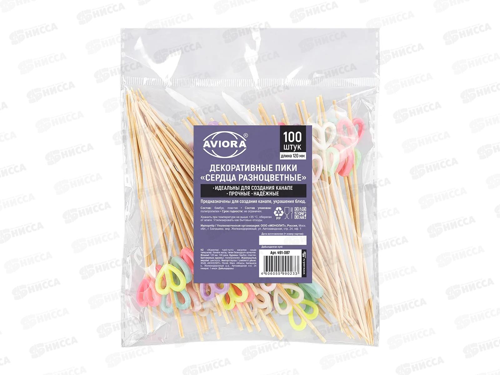 Пики бамбук AVIORA Сердца разноцветн 120мм 100шт пак 491-087 *50