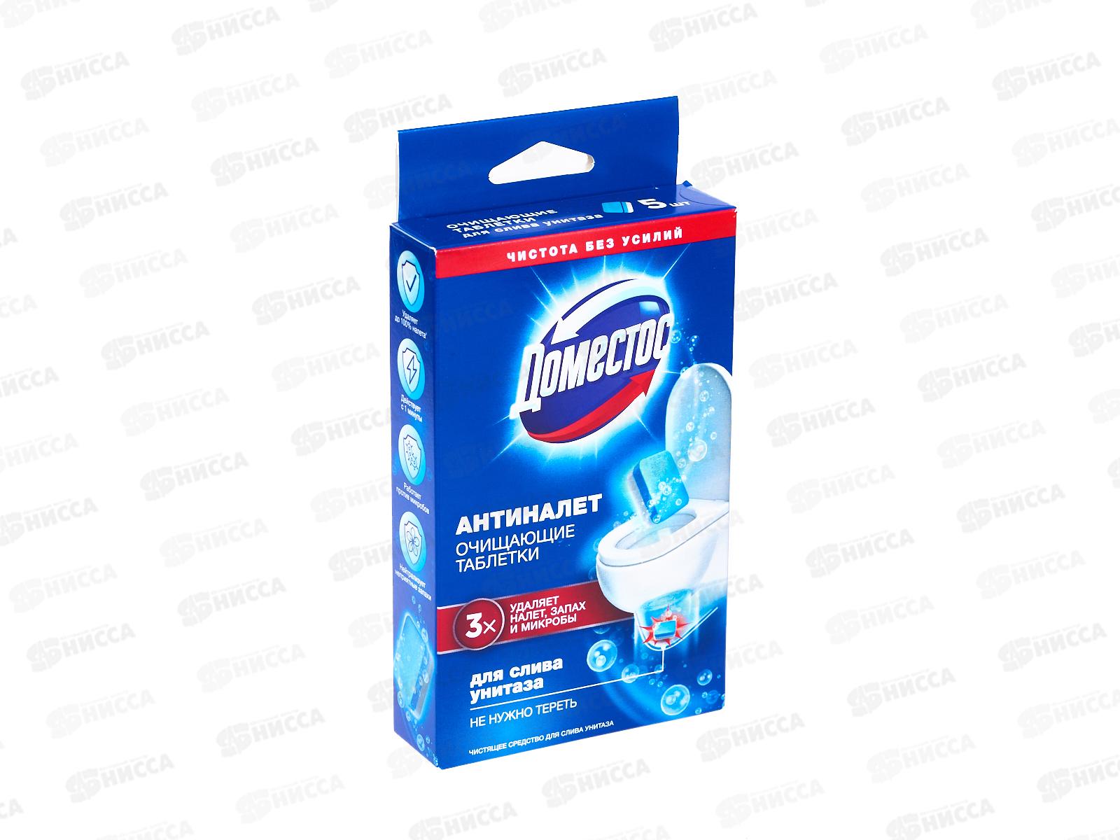 Код:587387; ДОМЕСТОС Таблетки антиналет очищающий для слива унитаза 90г