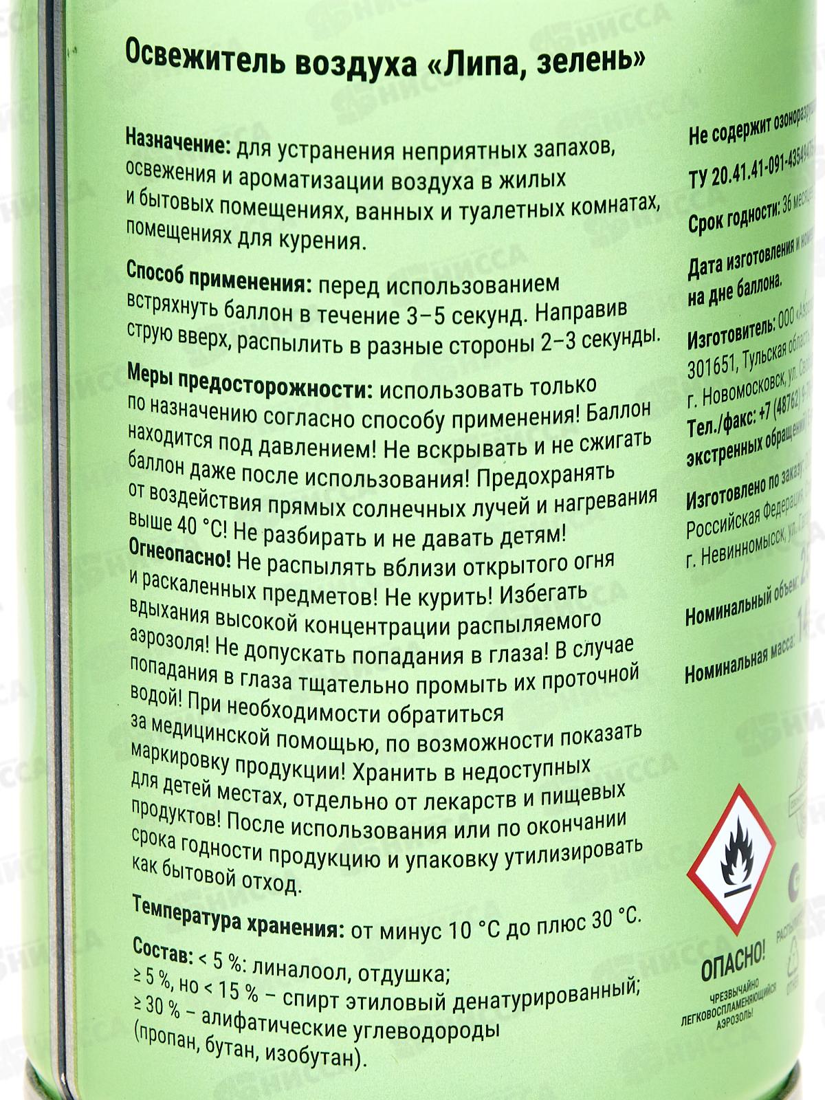 Состав: линалоол, отдушка, спирт этиловый денатурированный, алифатические углеводороды(пропан, бутан, изобутан).