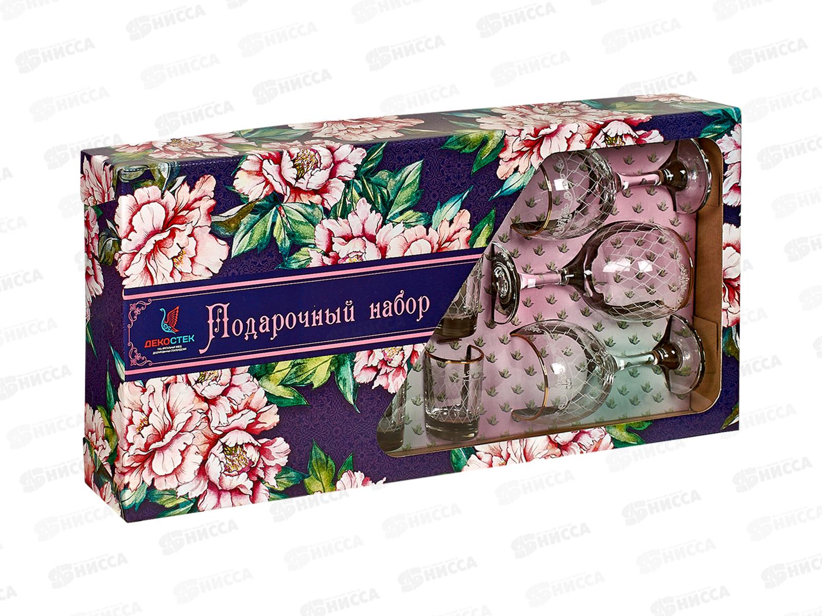Характеристики:Бренд: ДекостекАртикул: 1614-ГЗТип товара: Подарочный наборМодель: "Акация"Комплектация: бокалы 6 шт (290 мл), рюмки 6 шт (55 м...