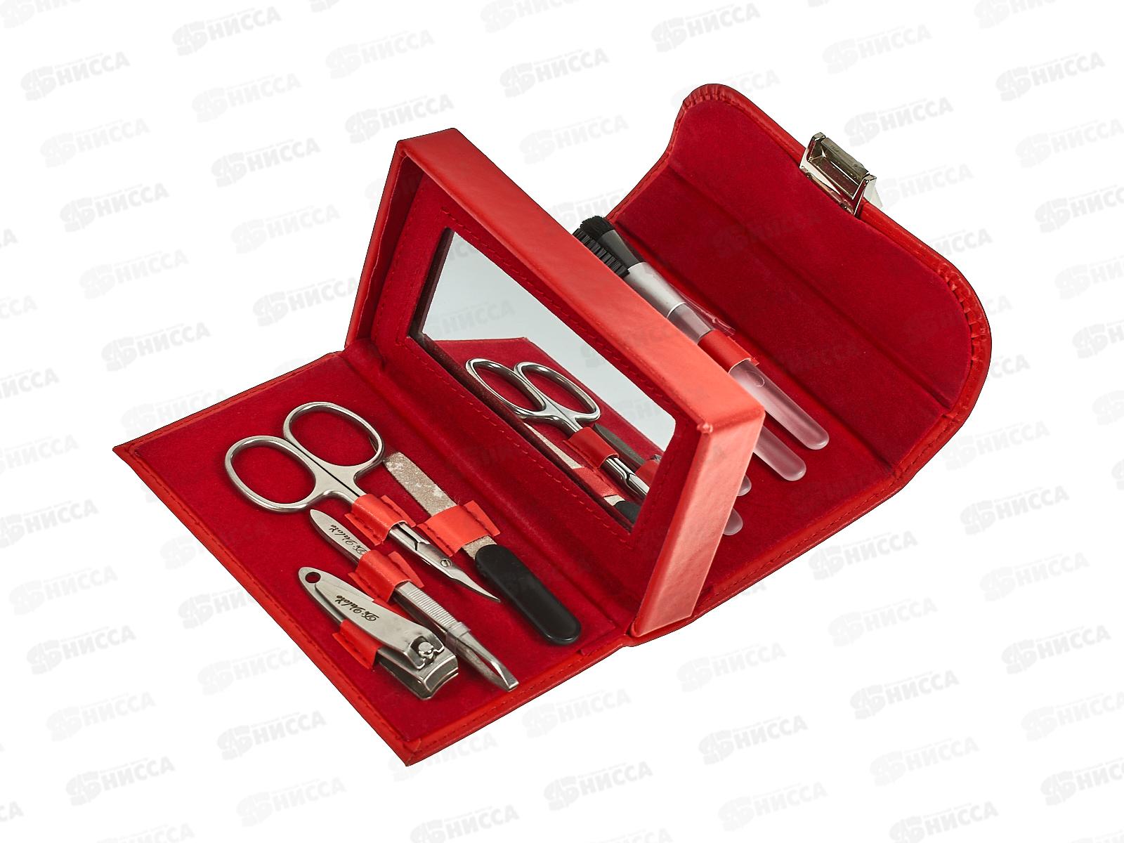 Код:285092; Маникюрный набор 9 предметов красный футляр из экокожи 107-012