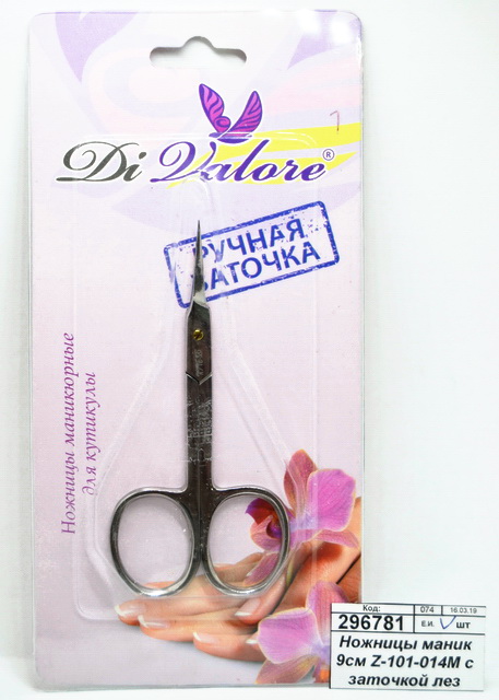 Код:296781; Ножницы маникюрные 9см Z-101-014М с заточкой лезвие изгиб *12