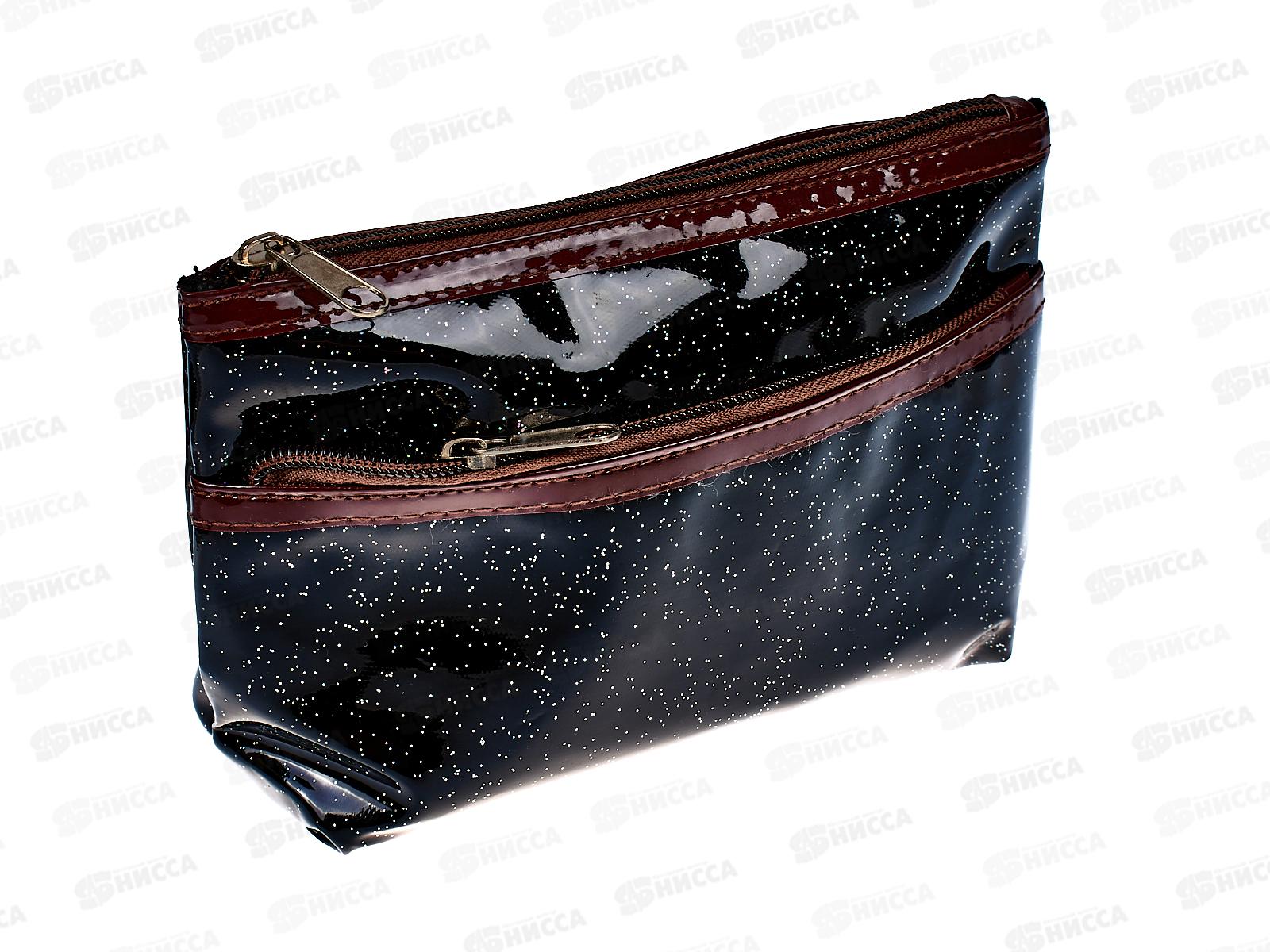 Код:451640; Косметичка женская Черный лак с блесками 20,5*5,5*12см 117-031