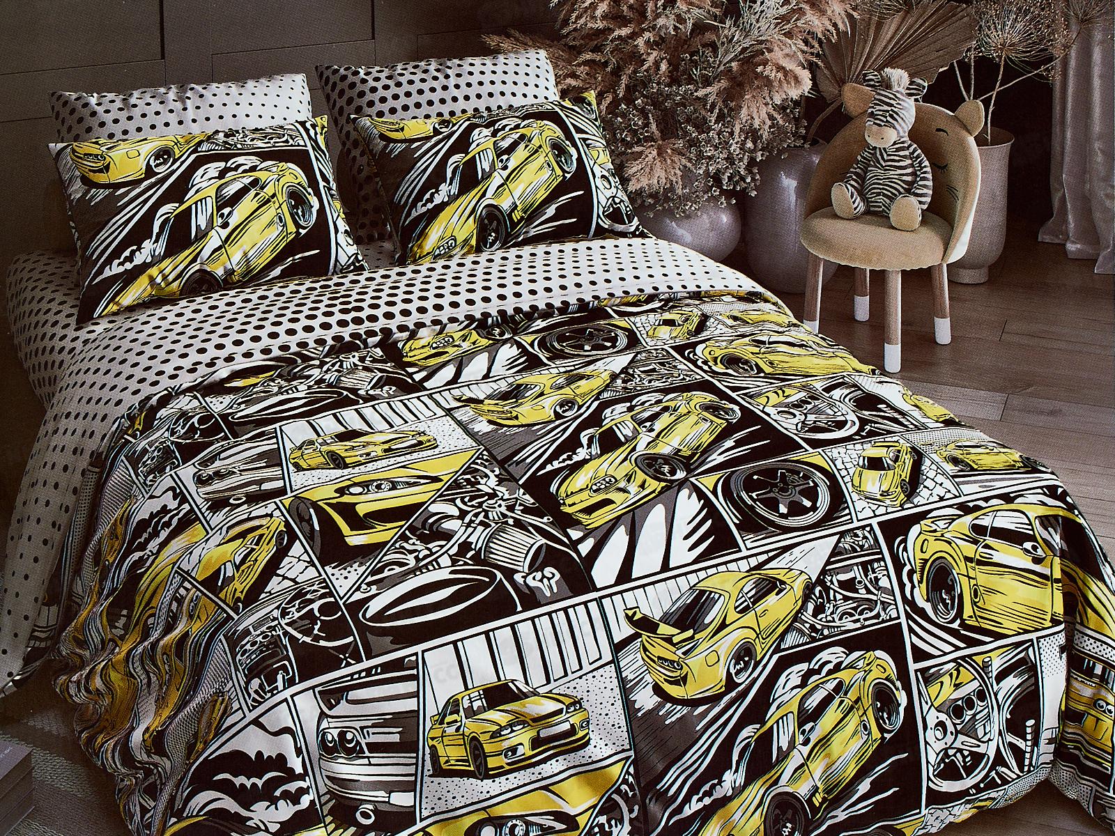 Код:596116; Комплект постельного белья LUXOR поплин Тинейджер Гонки желтый