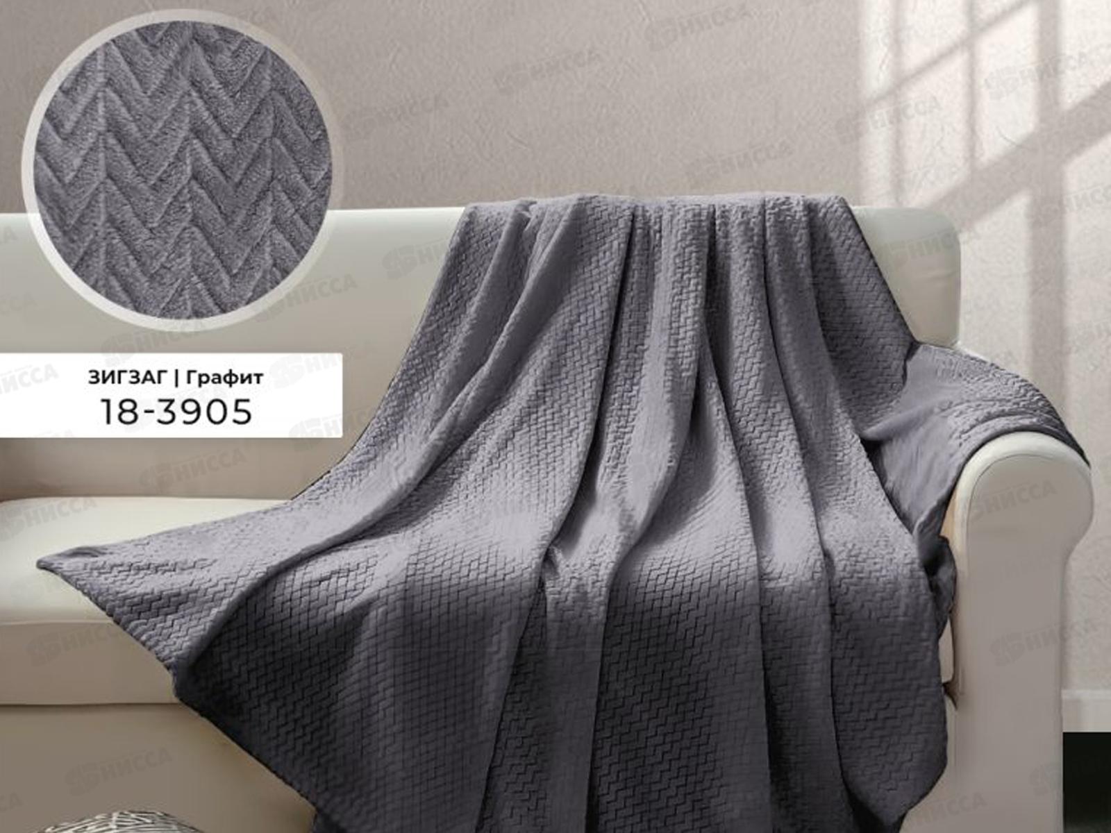 Код:559686; Плед Велсофт с тиснением Зигзаг 180*200 18-3905 Графит (Л)