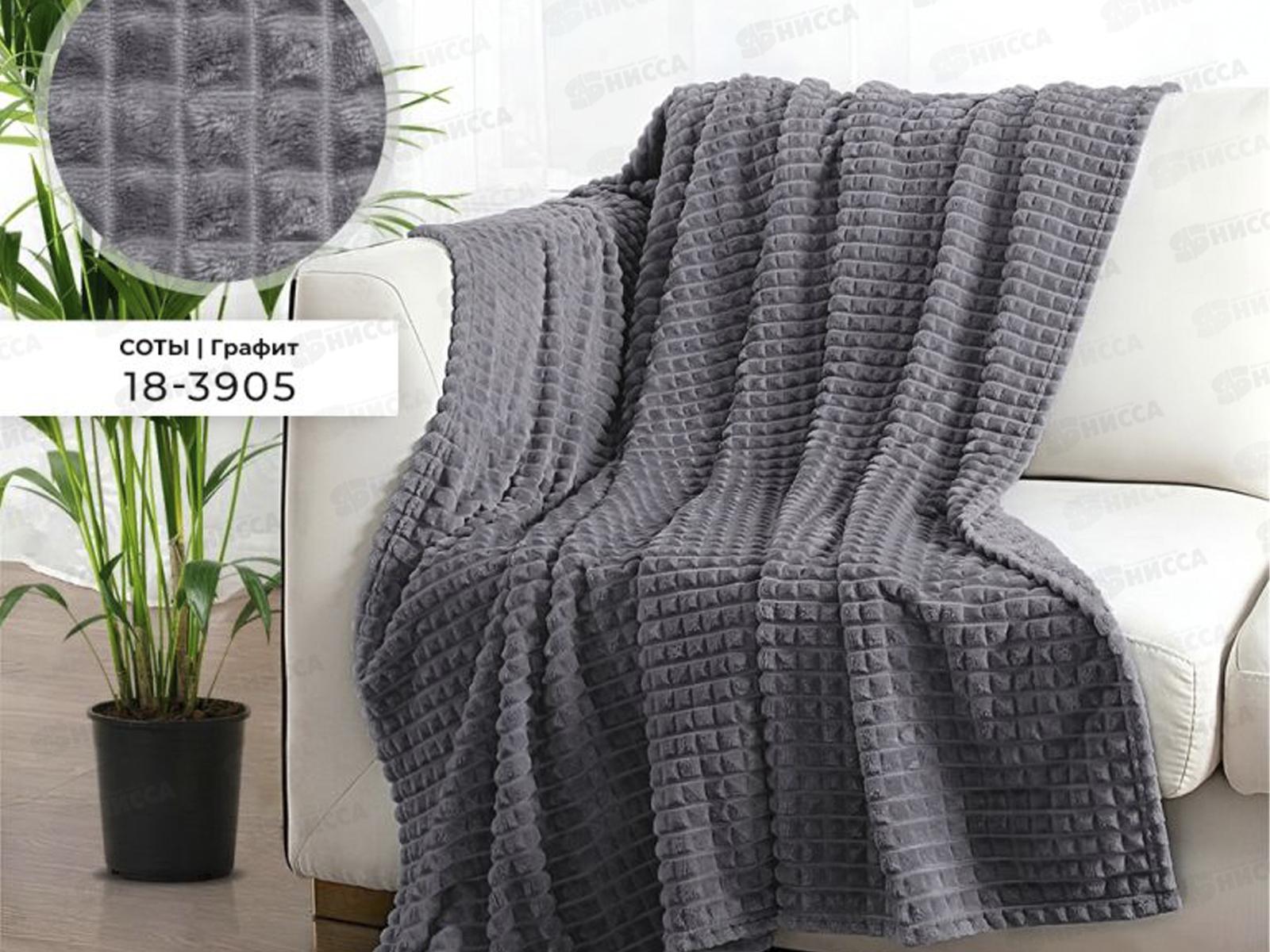 Код:587308; Плед Велсофт с тиснением Соты 180*200 18-3905 Графит