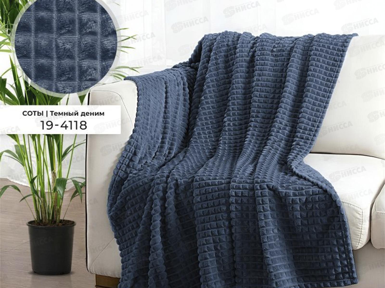 Код:587321; Плед Велсофт с тиснением Соты 180*200 19-4118 Темный деним