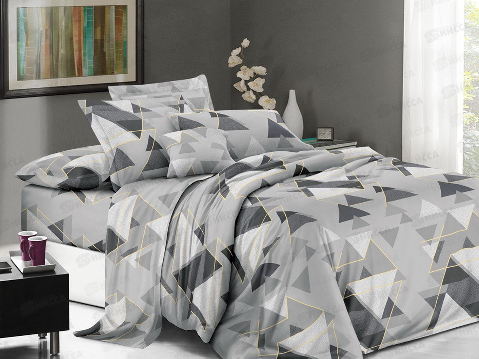 Код:547088; Комплект постельного белья 2,0 сп PANDORA полисатин с евро простыней q102901aa Треугольники