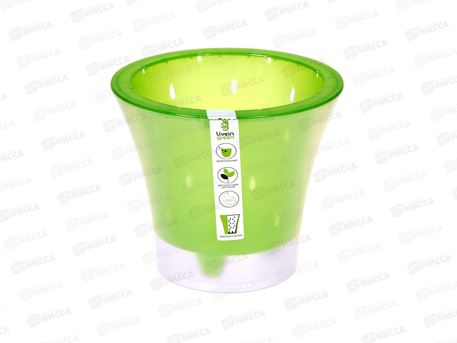 Код:571214; Горшок д/цветов Ванда 1,2л Зеленый-прозрачный (с вкладкой) d15 h13 *23