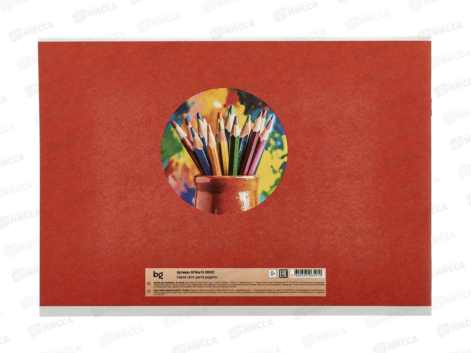 Альбом д/рис.16л BG Все цвета радуги. А4 на скрепке 08591 *60