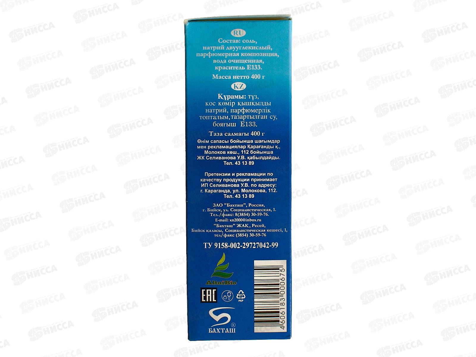 Состав: соль, натрий двууглекислый, парфюмерная композиция, вода очищенная, краситель Е133.
