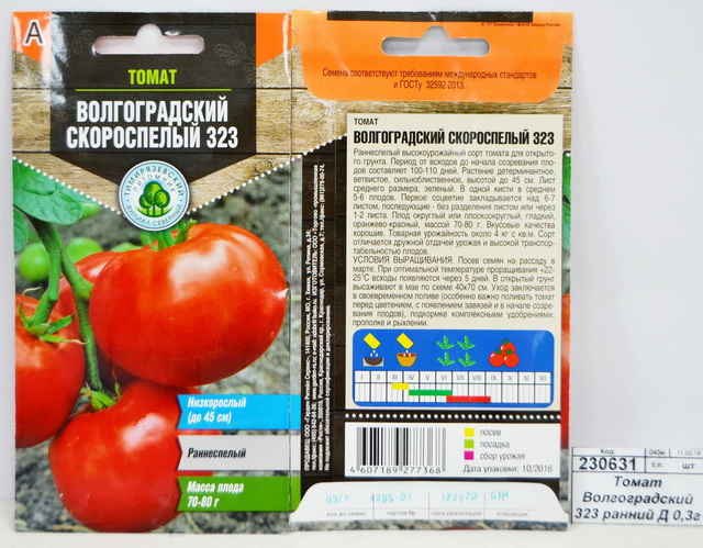 Код:230631; Томат Волгоградский 323 ранний Д 0,3 грамма *10 Т.П.