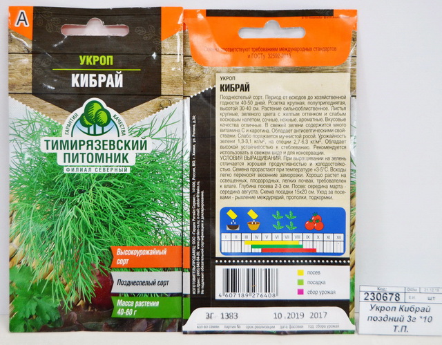 Код:230678; Укроп Кибрай поздний 3 грамма *10 Тимирязевский Питомник.