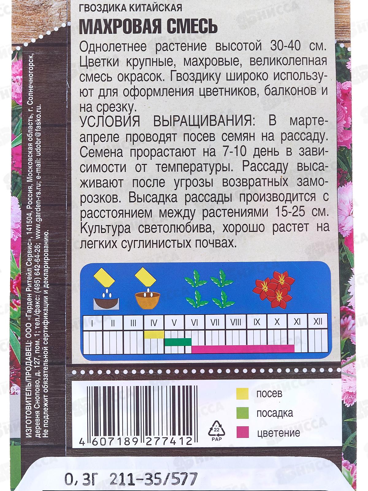 Гвоздика Китайская махровая смесь 0,3 грамма *10 Т.П. +