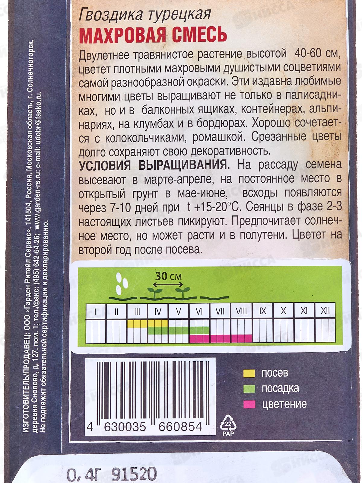 Гвоздика Турецкая махровая смесь 0,4 грамма *10 Т.П. +