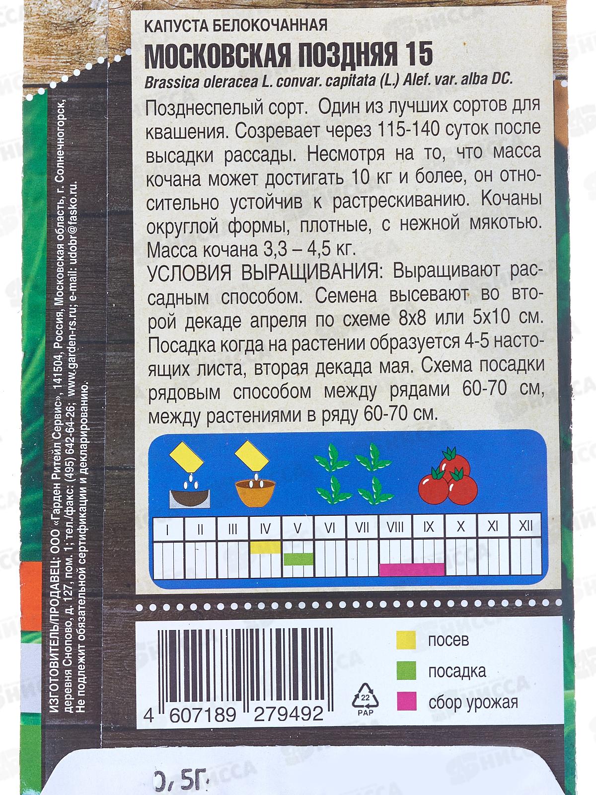 Капуста белокочанная Московская поздняя 0,5 грамм *10 Т.П. +