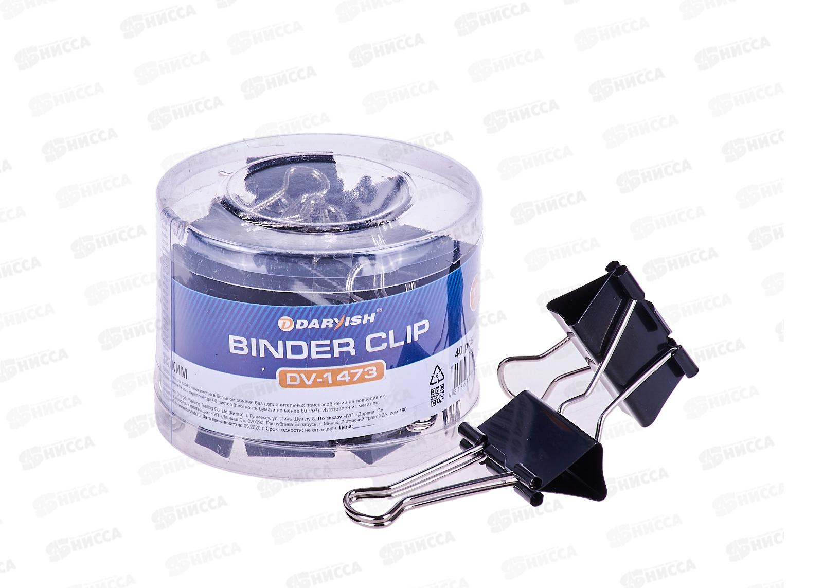 Код:453581; Зажим для бумаг Darvish 19мм, черный, банка 40 штук DV-1473 *1