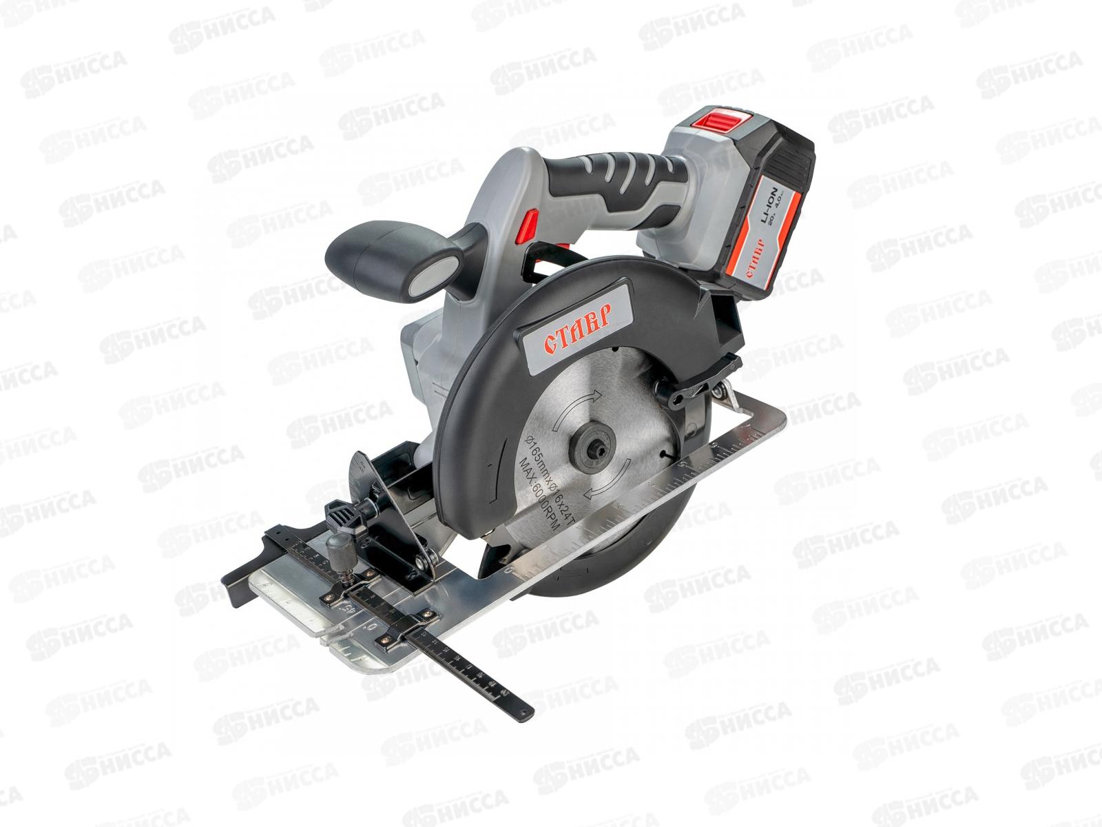 Код:401194; Пила дисковая аккумуляторная 20В, 3800об/мин, 165*16мм, продается без аккумулятора и зарядного, Ставр ПДА-165/20