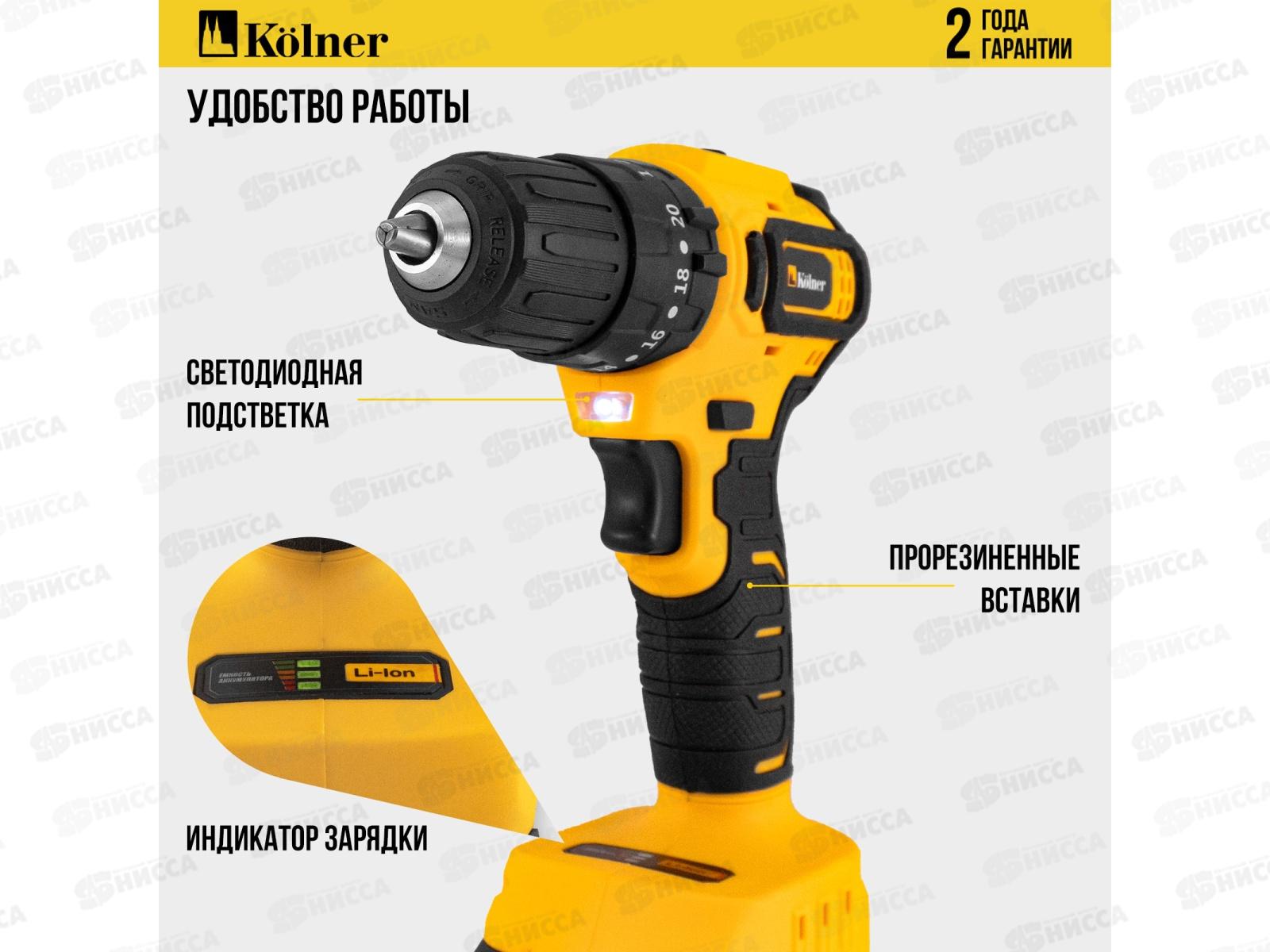 Дрель-шуруповёрт ударная аккумуляторная 20В BL 45Нм Kolner KCD 20/2BLC 0-450/0-1700о/м