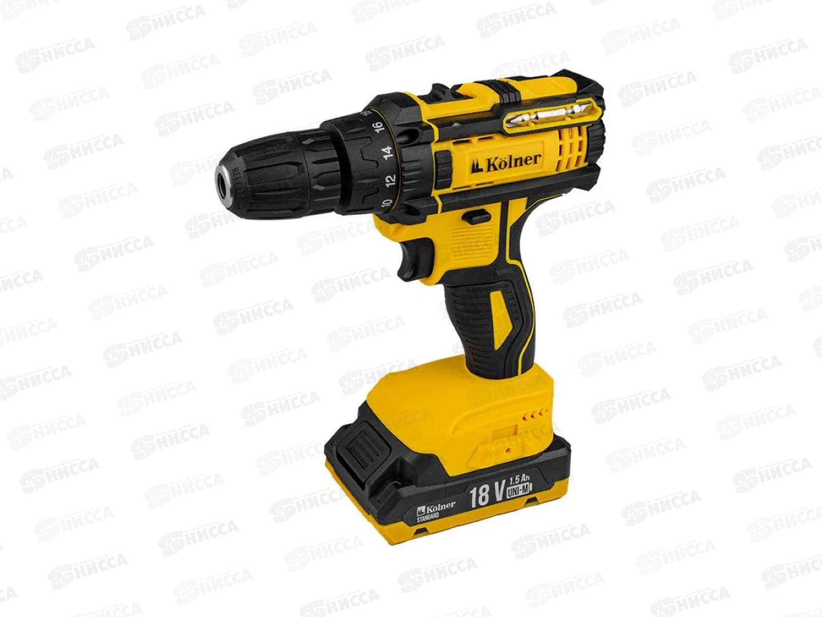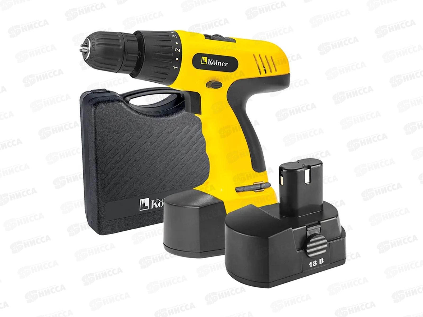 Код:547712; Дрель-шуруповерт аккумуляторная 18В, 0-350/ 1350об/м, Kolner KDD 18BL