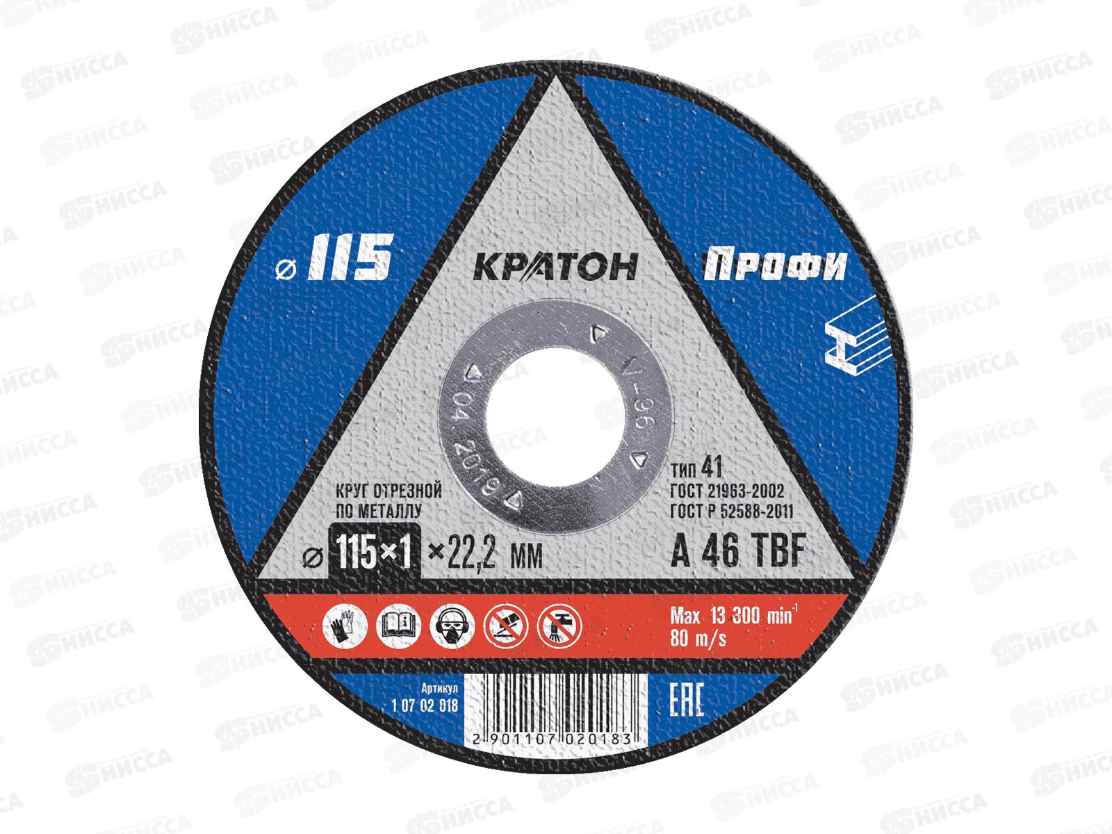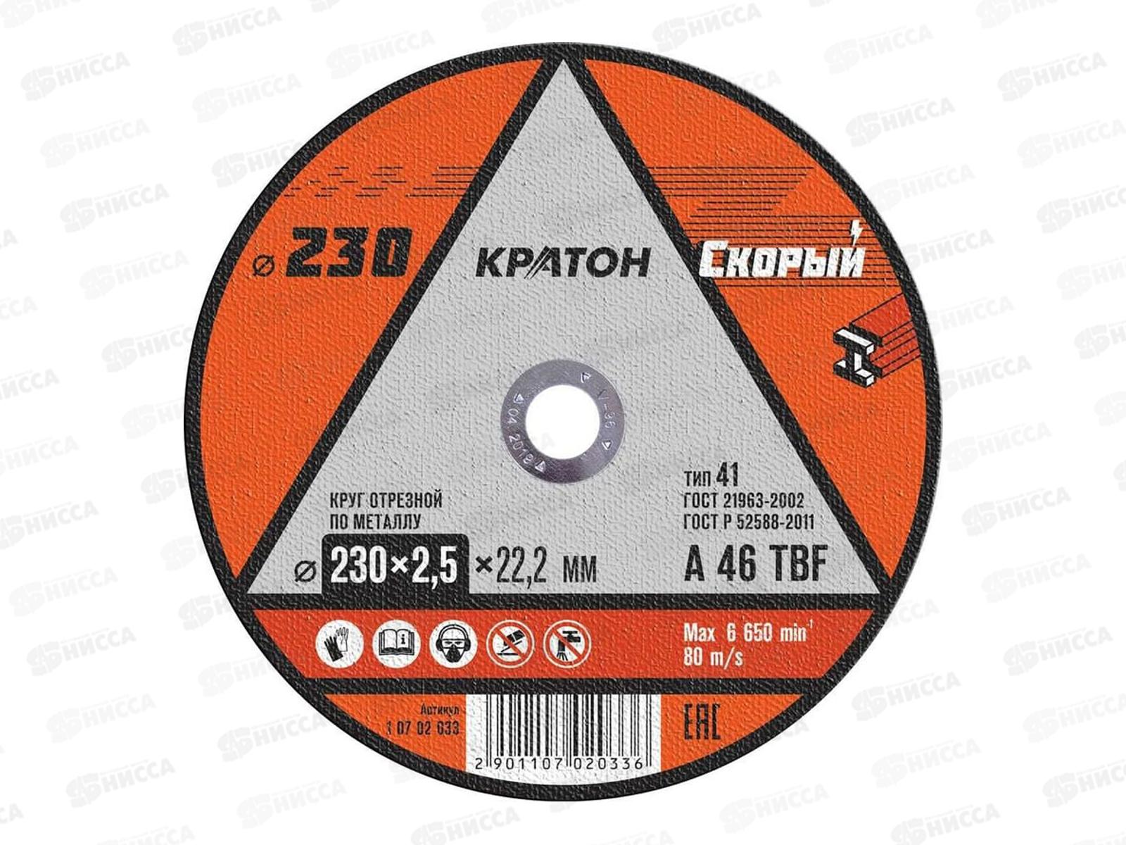 Отрезной круг по металлу Кратон Скорый с зернистостью A 46 TBF. Двойное усиление стекловолоконной армирующей сеткой придает диску необходимую упругост...