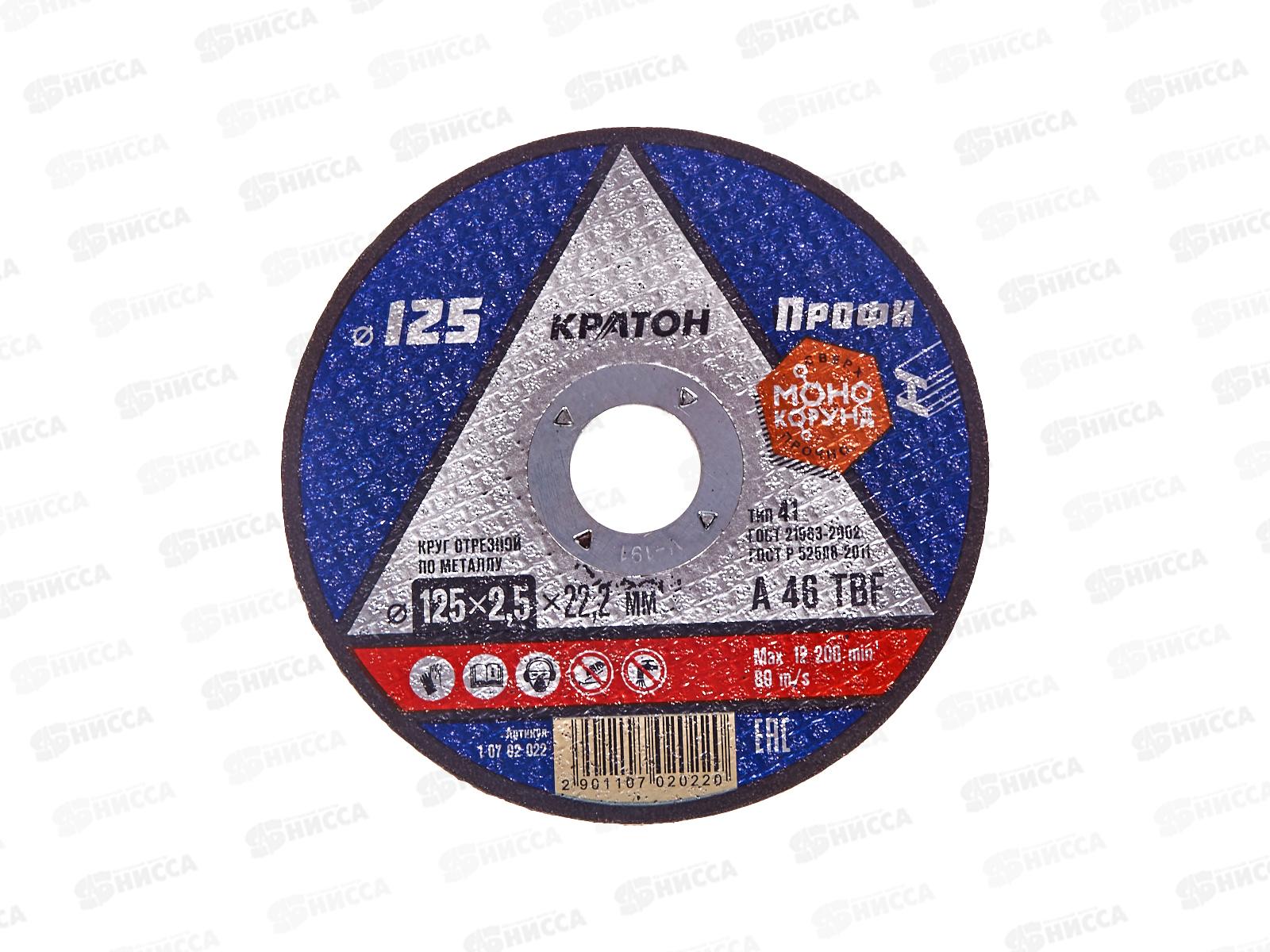 Код:247749; Диск абразивный по нерж.стали КРАТОН 125*1,2*22,2мм (10705006) *10/100