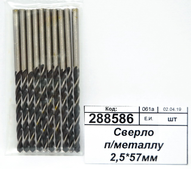 Код:390444; Сверло по металлу 2,5*57мм 10511016 *10/100