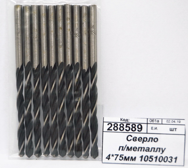 Код:288589; Сверло по металлу 4*75мм 10510031 *10/100