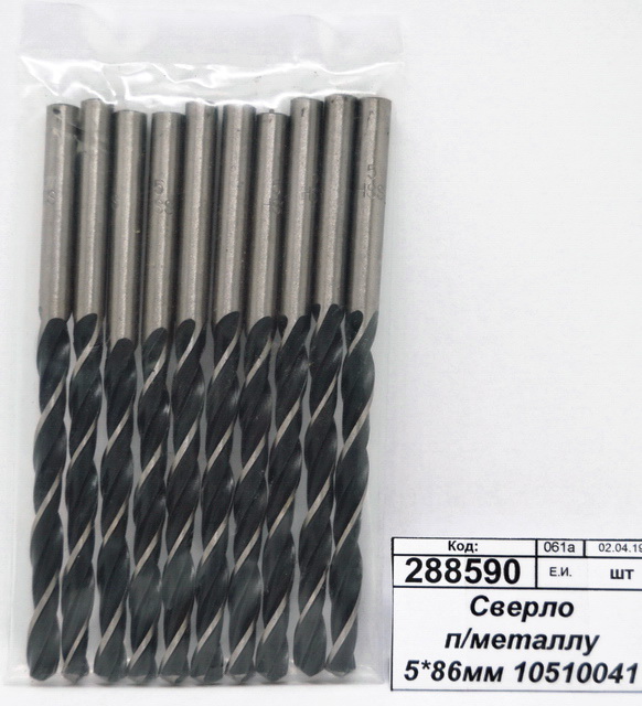 Код:288590; Сверло по металлу 5*86мм 10510041 *10/100