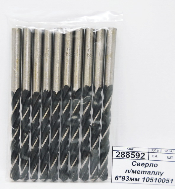 Код:288592; Сверло по металлу 6*93мм 10510051 *10/100