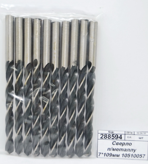 Код:288594; Сверло по металлу 7*109мм 10510057 *10/100