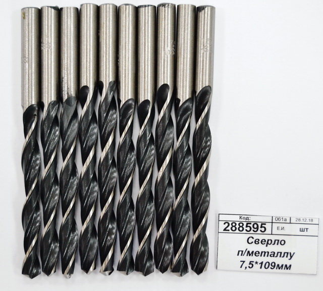 Код:288595; Сверло по металлу 7,5*109мм 10510058 *10/100