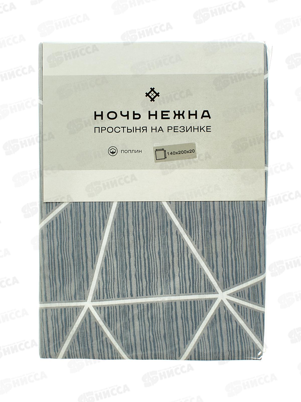 Код:430702; Простыня НН поплин на резинке 140*200*20 Грань (серый) 7352-2
