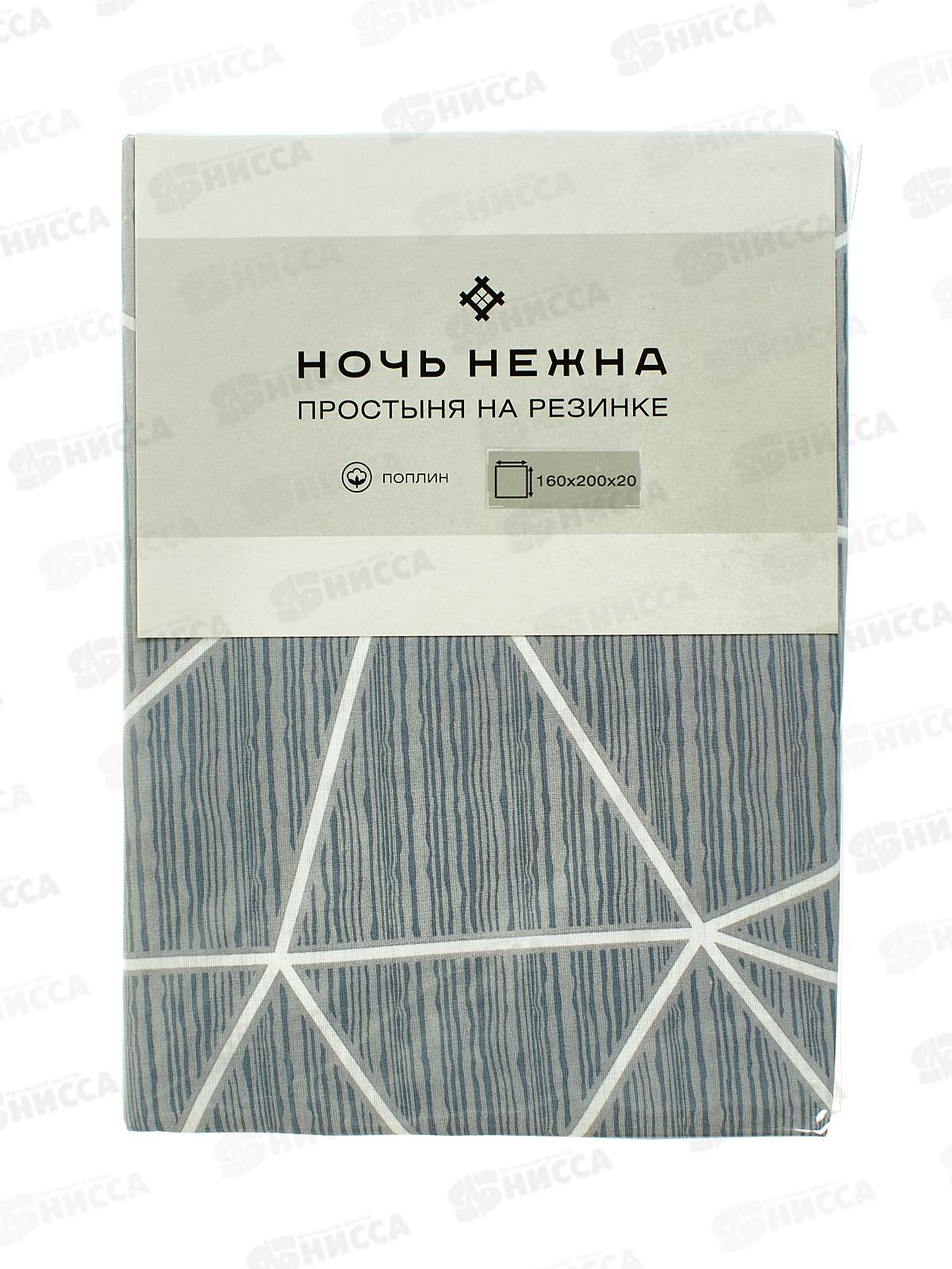 Код:430703; Простыня НН поплин на резинке 160*200*20 Грань (серый) 7352-2