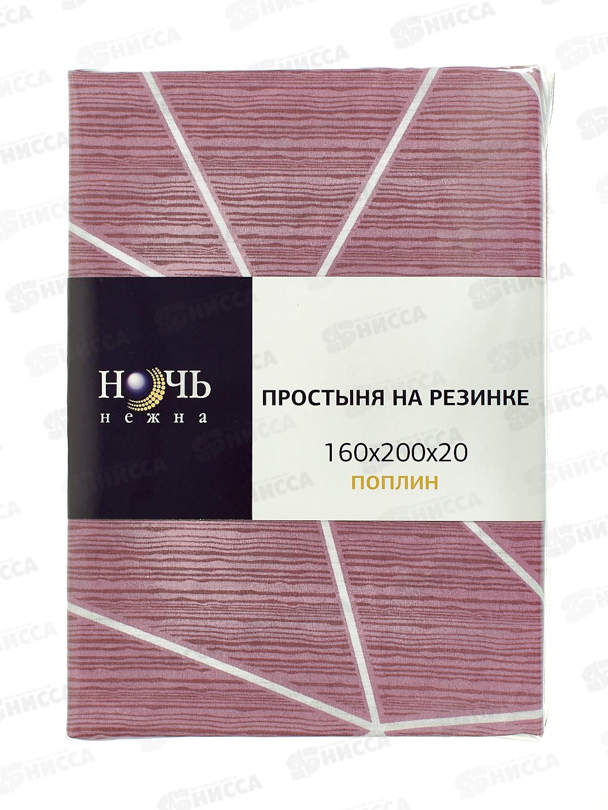 Код:544503; Простыня НН поплин на резинке 160*200*20 Грань розовый 7352-1