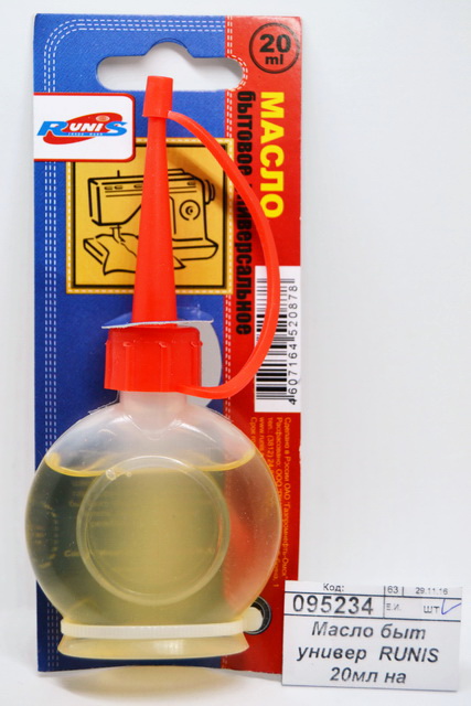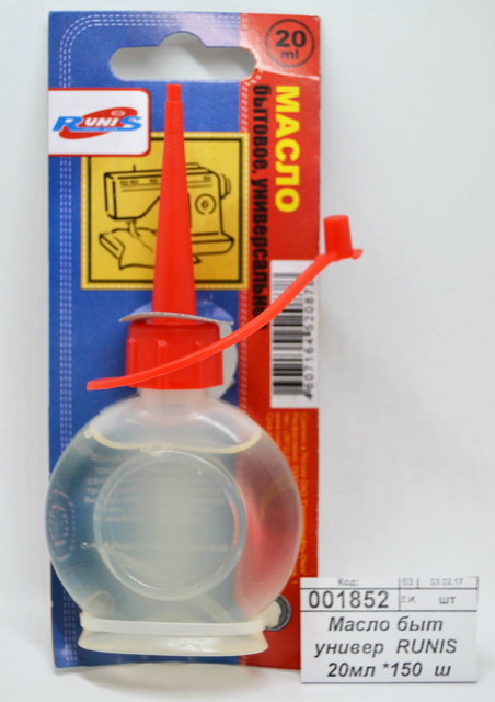 Масло бытовое Runis 2-005, предназначено для смазывания, защиты и предохранения от коррозии швейных и вязальных машин, бензопил, а также другого промы...
