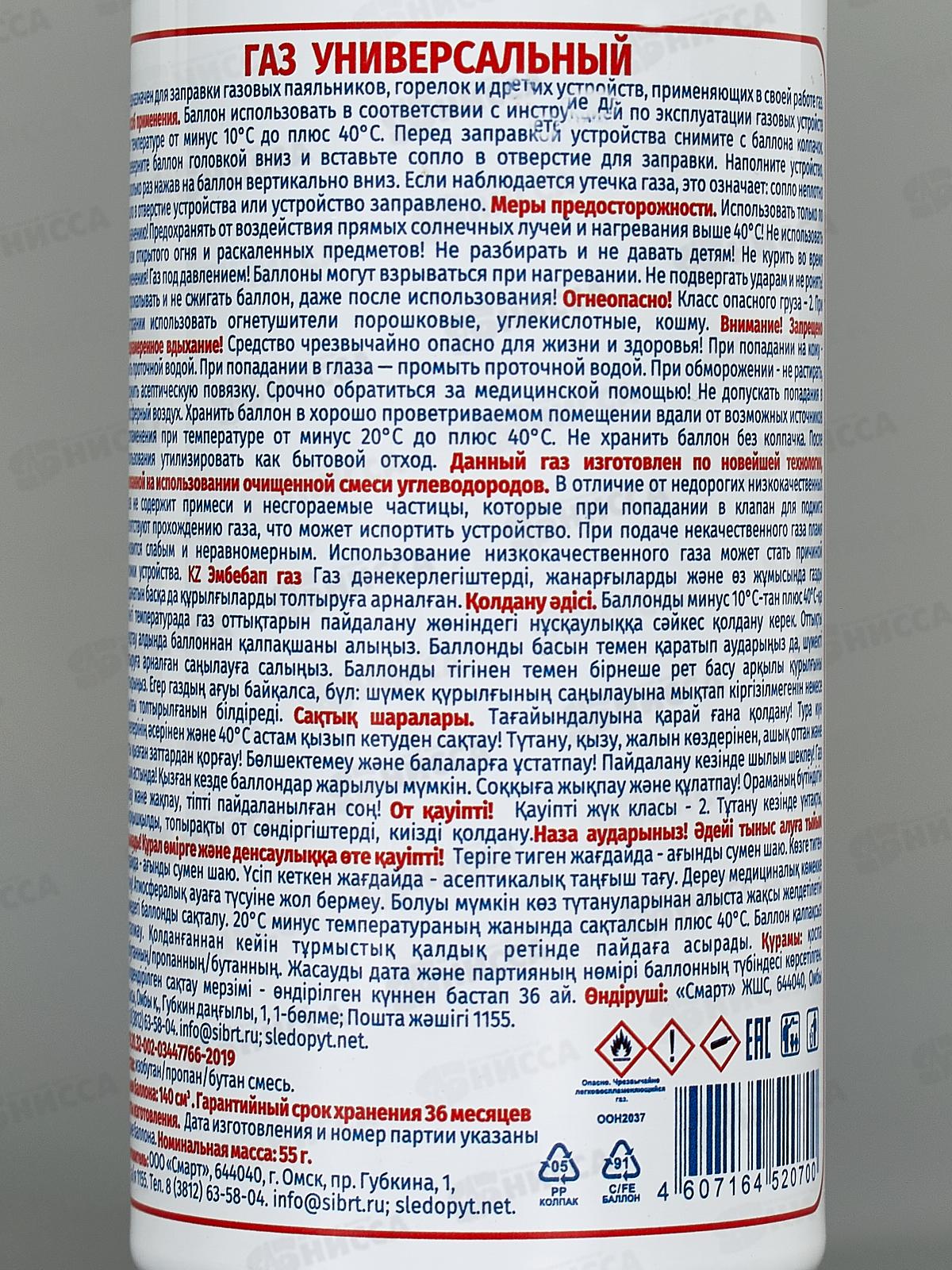 Газ для зажигалок RUNIS 140мл белый, 1-007 *36