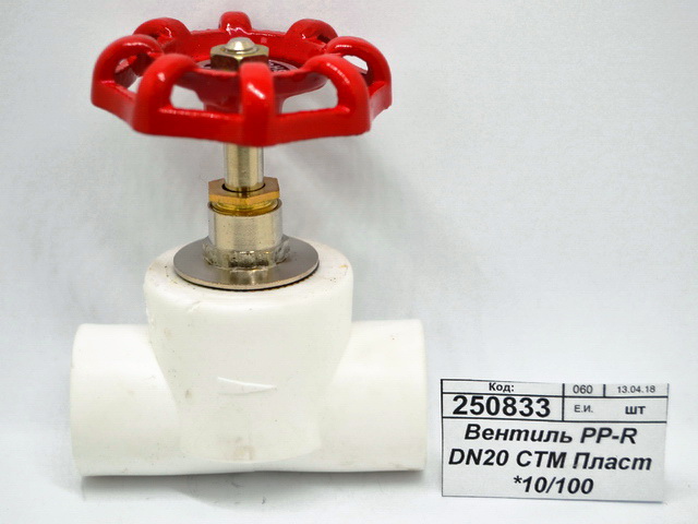 Код:250833; Вентиль PP-R DN20 СТМ Пластмассовый *10/100