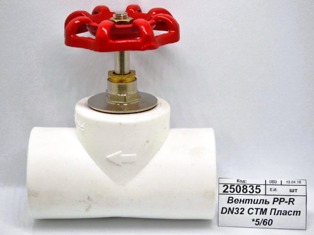 Код:250835; Вентиль PP-R DN32 СТМ Пластмассовый *5/60