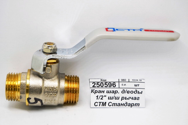 Код:250596; Кран шаровый для воды 1/2" штуцер-штуцер рычаг СТМ Стандарт *17