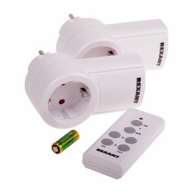 Код:266302; Розетка радиоуправляемая с пультом Rexant (1 пульт+2 розетки)