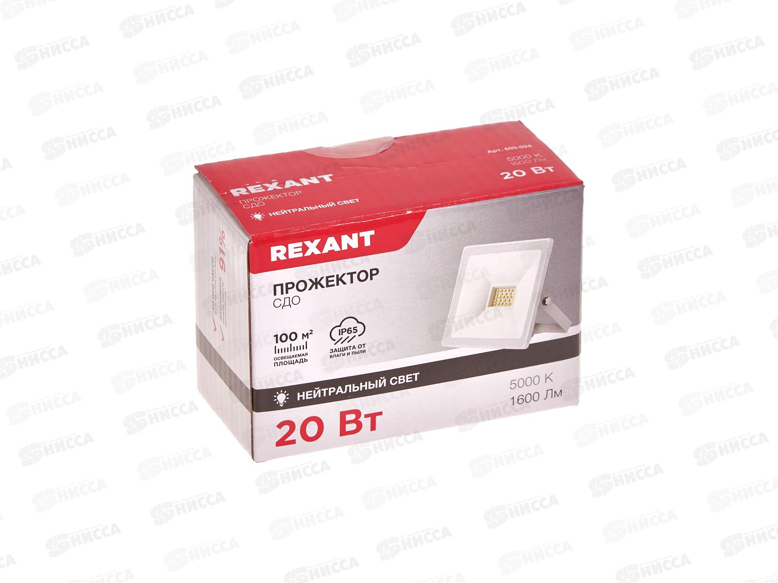 Код:515134; Прожектор светодиодный REXANT СДО 20Вт 1600Лм 5000К свет белый 605-024 *24