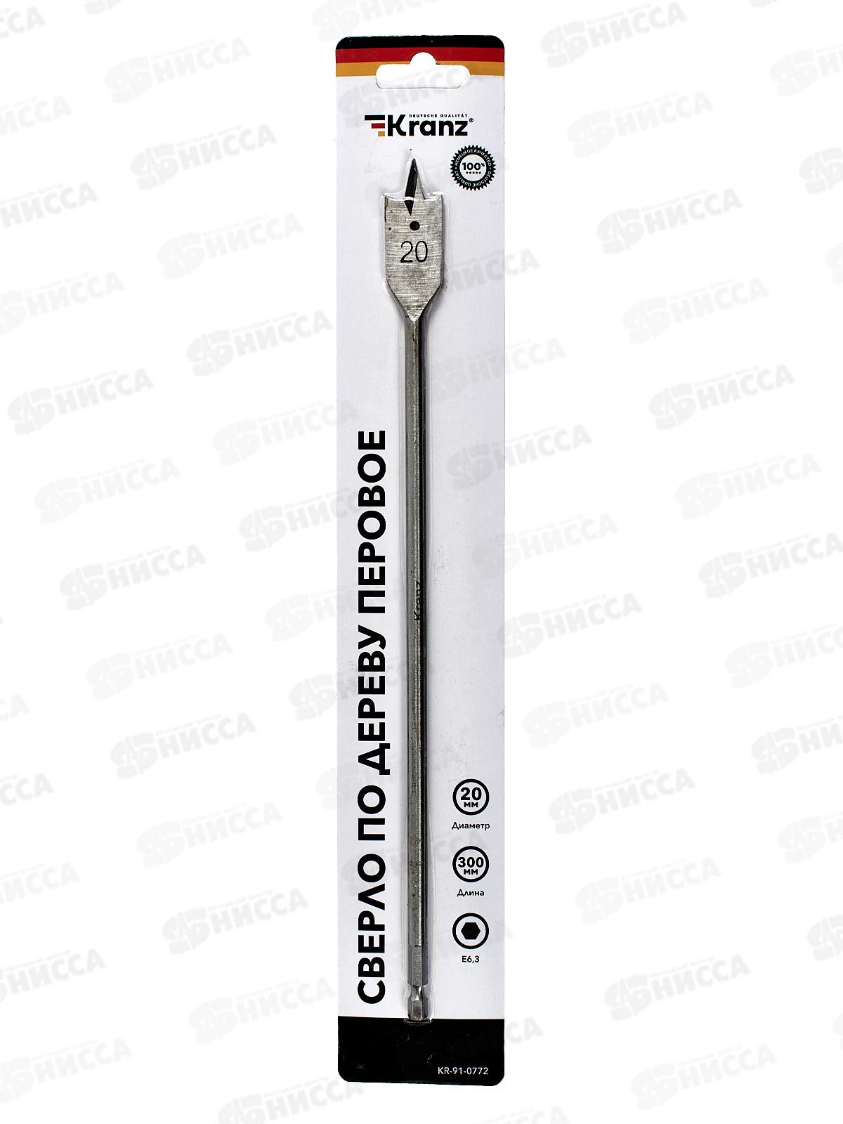 Код:515209; Сверло перовое по дереву 20*300мм шестигранн хвостик Kranz KR-91-0772