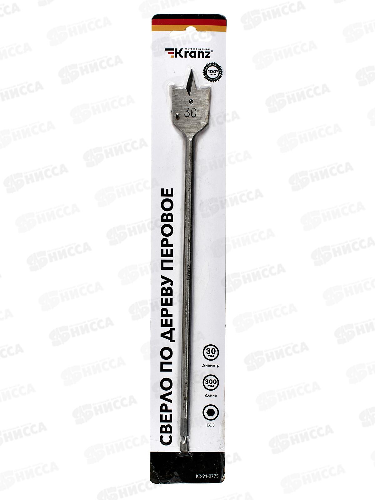 Код:515212; Сверло перовое по дереву 30*300мм шестигранн хвостик Kranz KR-91-0775