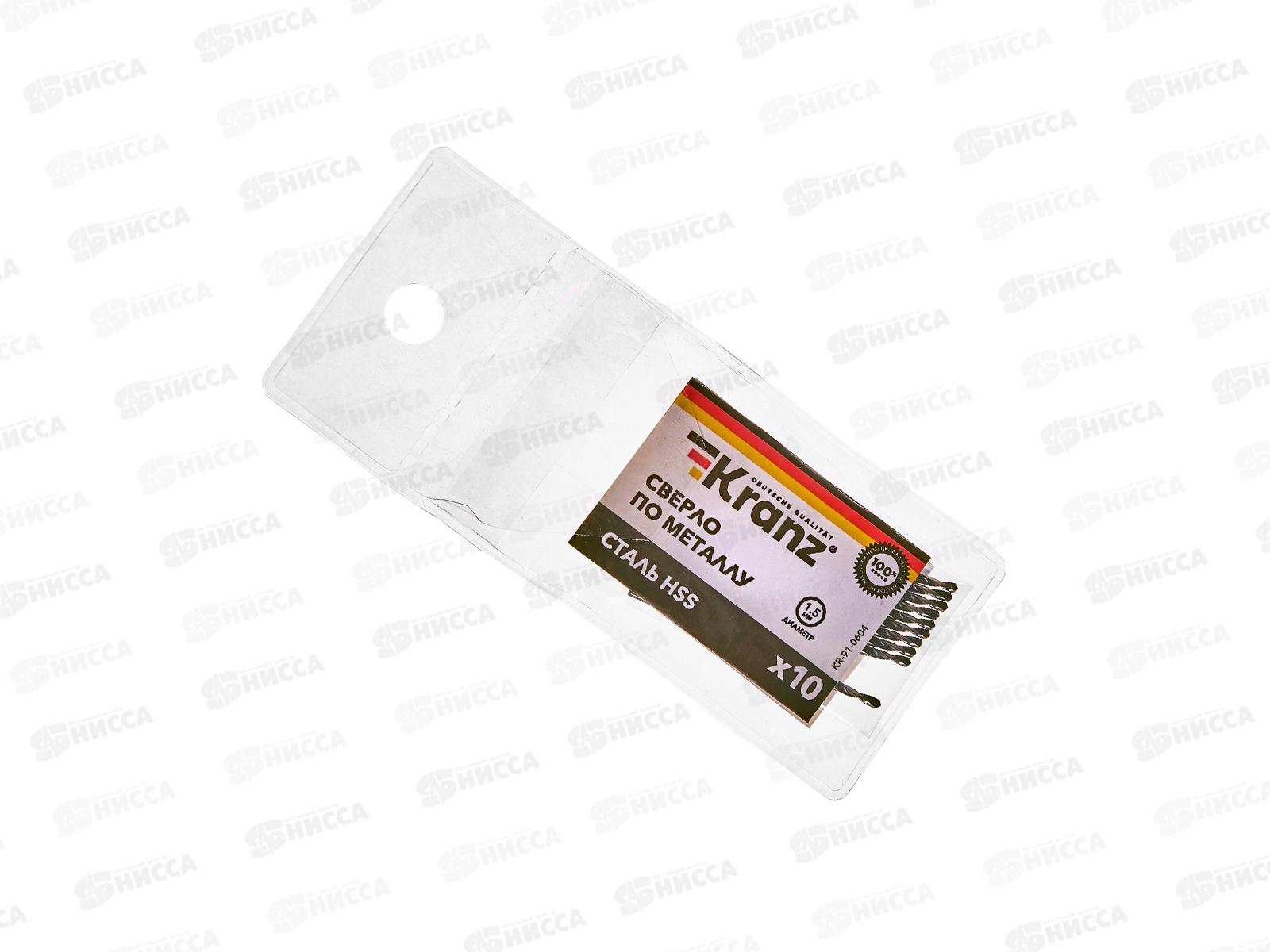 Код:515215; Сверло по металлу 1,5*40*18мм HSS 10шт Kranz DIN 338 KR-91-0604
