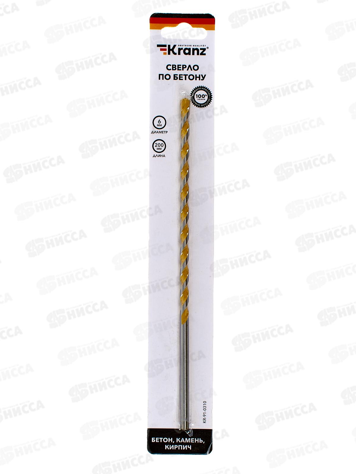 Код:538035; Сверло по бетону 6*200мм цилиндрический хвостик KRANZ, KR-91-0310