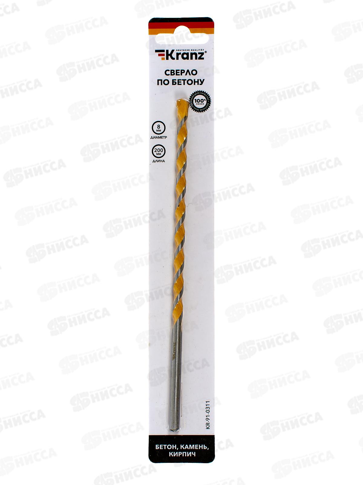 Код:538037; Сверло по бетону 8*200мм цилиндрический хвостик KRANZ, KR-91-0311