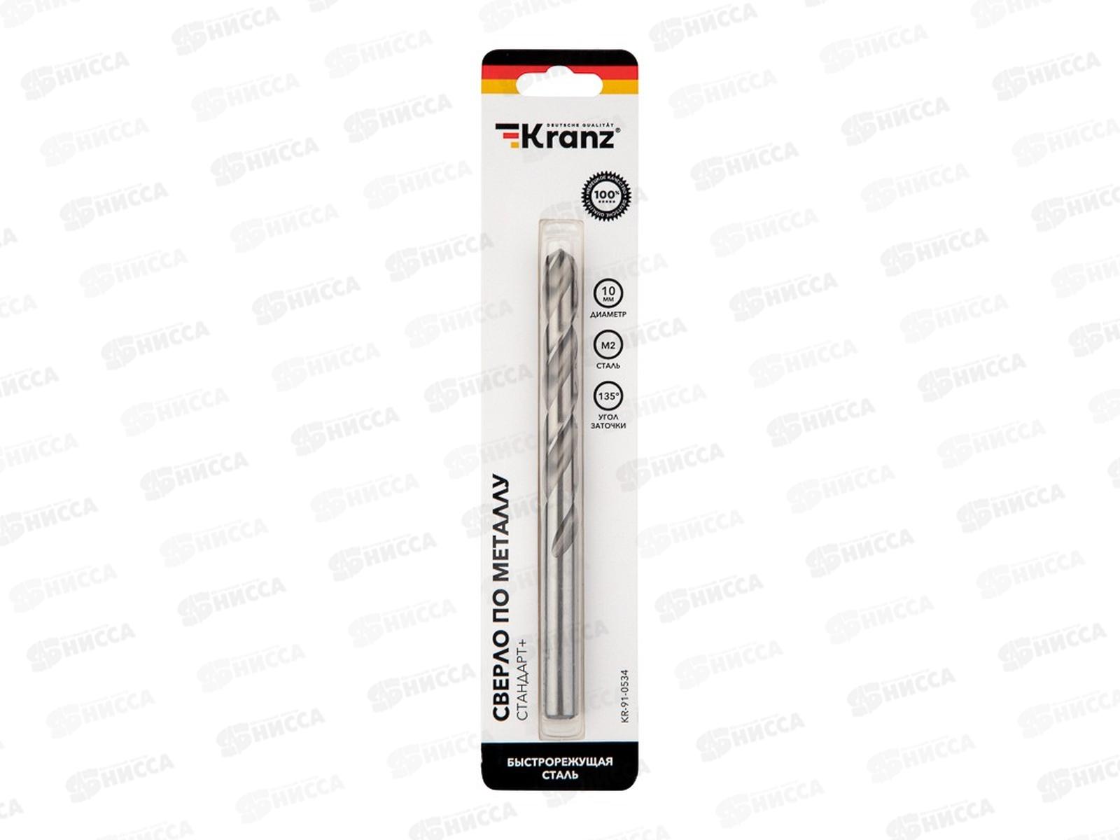 Код:546999; Сверло по металлу 10х133х87мм Стандарт+ (P6M5 M-2) DIN 338, 1 шт. в блистере KRANZ, KR-91-0534