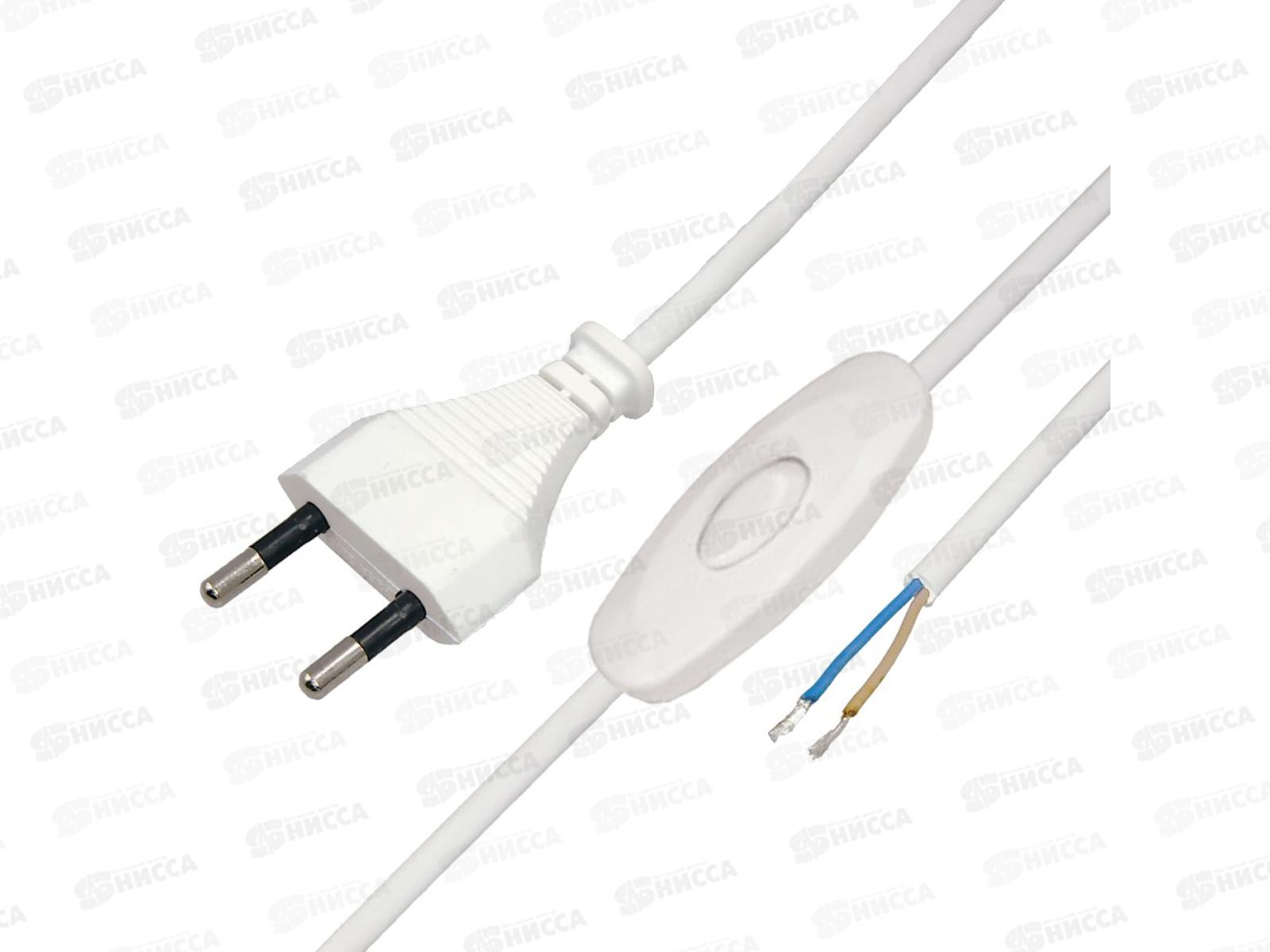 Код:349978; Шнур сетевой с вилкой и выключателем, 1.8м, белый, 11-1115