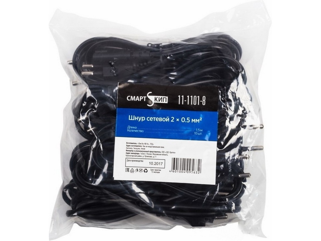 Код:350117; Шнур сетевой с вилкой евро C7, 2*0.5, 1.5м, 11-1101-8